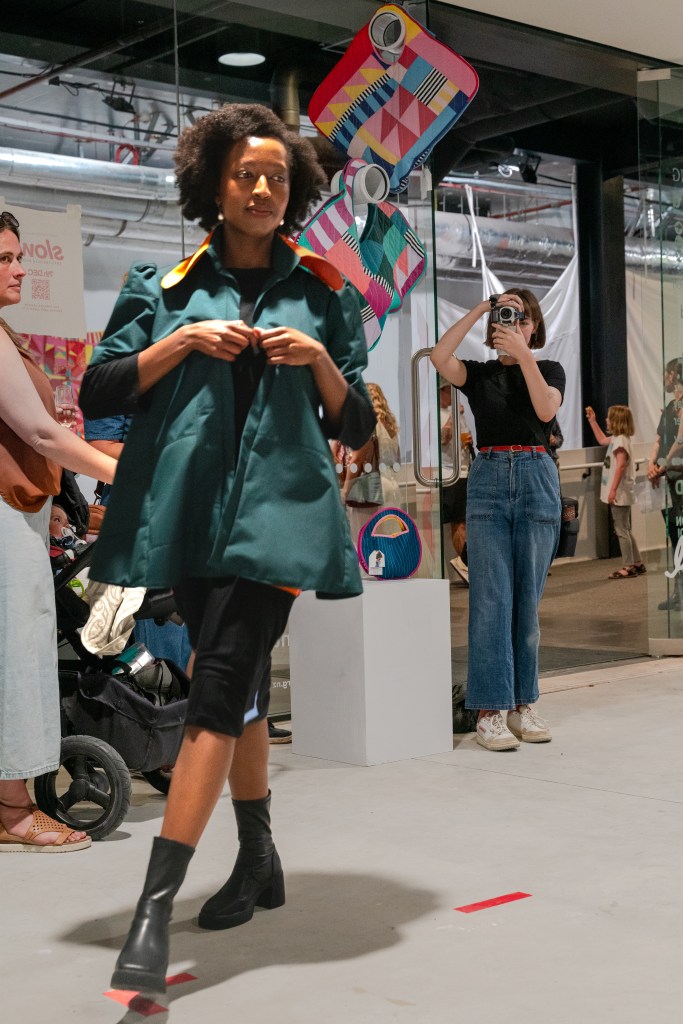 Minimising the impact of fashion production is central to the ethos of the brand, which uses otherwise discarded resources such as textile waste from local manufacturers, second hand textiles and deadstock fabrics. Although this approach provides challenges, it results in garments characterised by jolts of colour, strong silhouettes and playfulness. They go beyond the trend cycle, and are made to be worn and appreciated for years rather than a season.